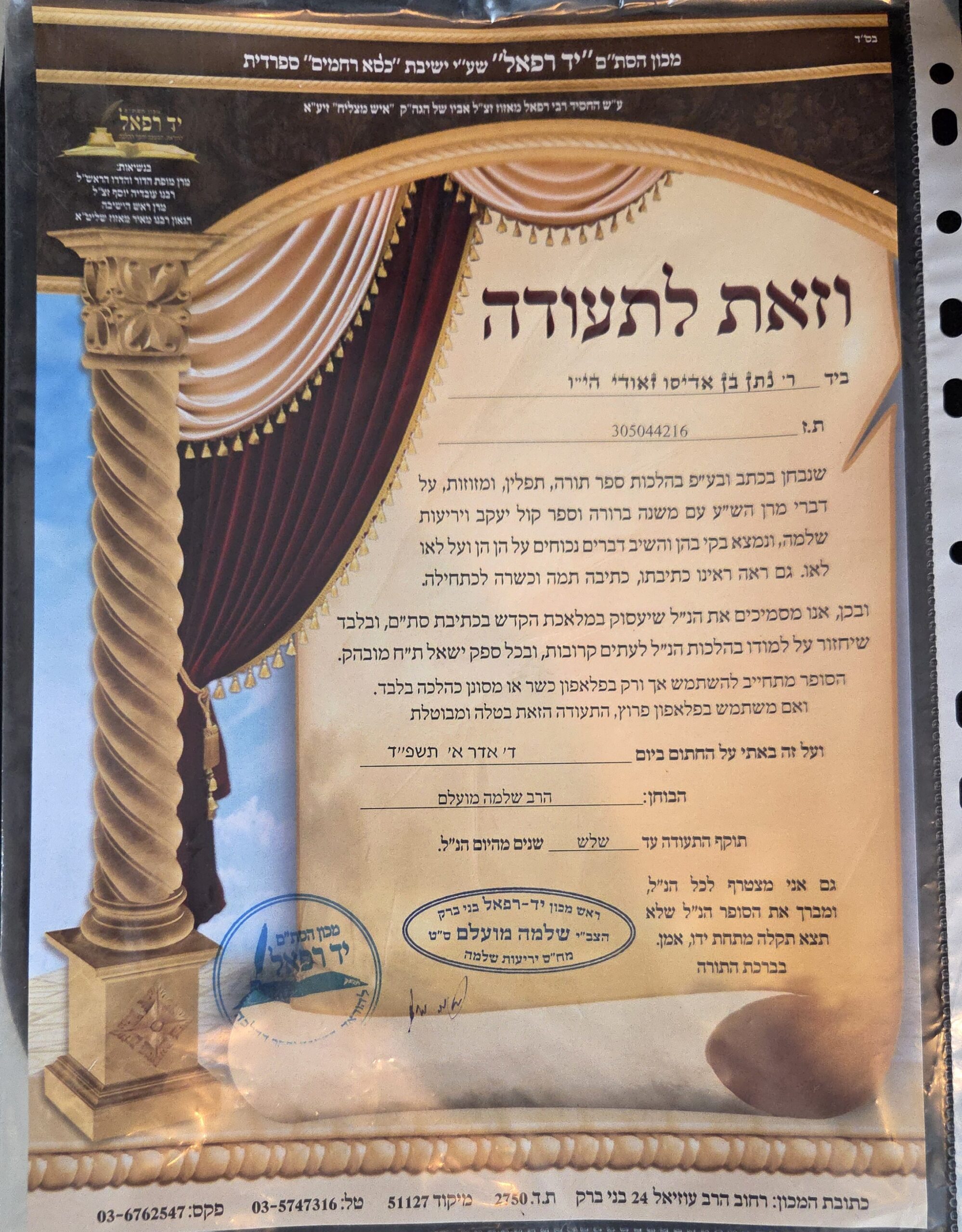 נתן זאודי הוא סופר סת"ם ירא שמיים בעל ותק של 8 שנים והסמכה רשמית מטעם מכון "יד רפאל". הייחודיות של נתן היא בהקפדה על איכות החומר והכתב מתוך מחשבה לטווח ארוך, כשהוא שם דגש מיוחד על יצירת כתב נאה, ברור וחזק שישרוד שנים רבות ללא דהייה או בלאי. נתן כותב מתוך תחושת שליחות ואחריות כשהוא יושב בצוותא בחבורת סופרים יראי שמיים המחדדים זה את זה בהלכה ובדיוק, ומקפיד על טבילה במקווה לפני הכתיבה ועל קביעת עיתים לתורה באופן קבוע, כך שאתם מקבלים סת"ם שנכתב באווירה של תורה ואיכות מקסימלית.